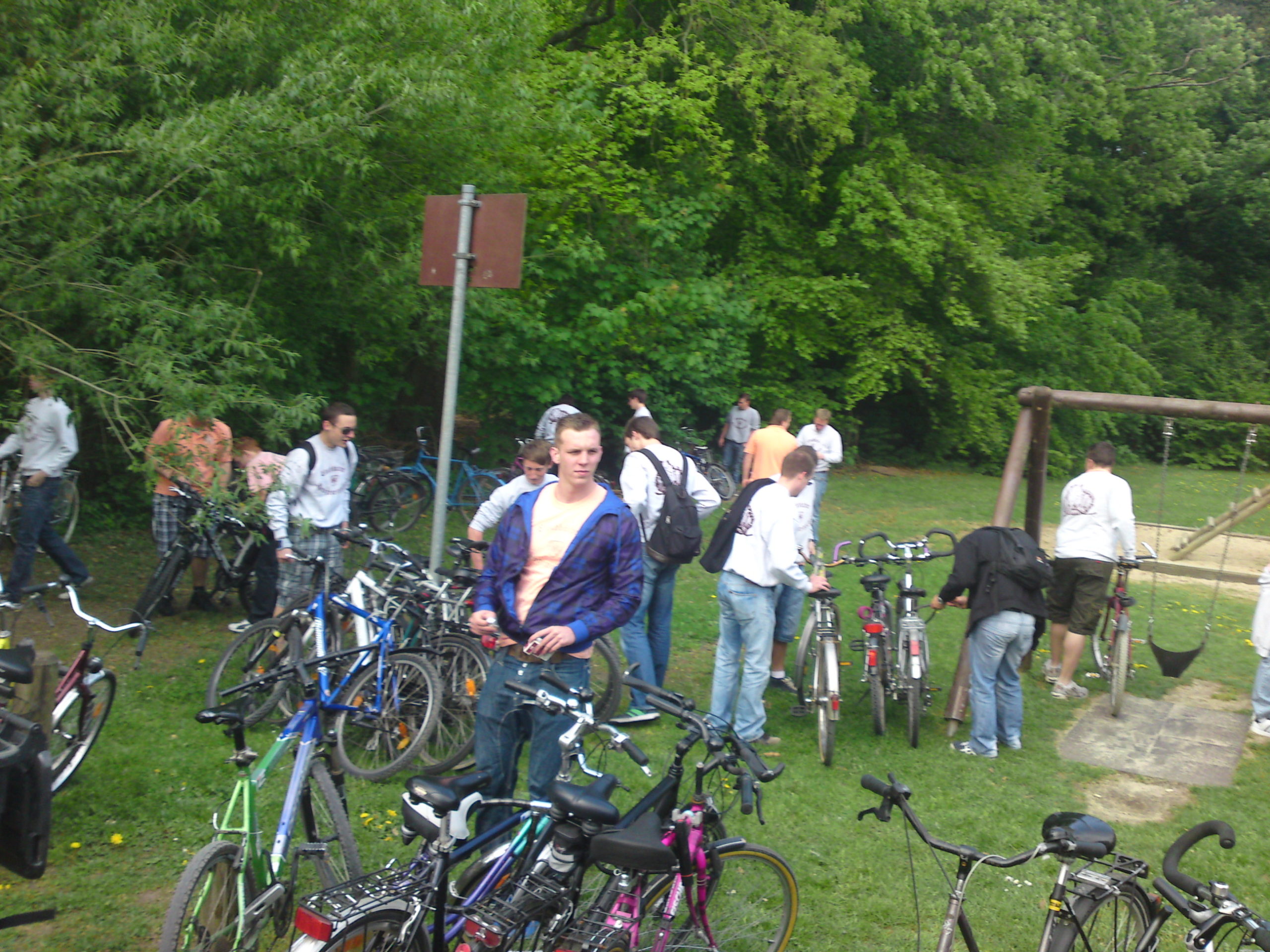 Es waren wieder rund 100 Kerbgemeinschaftler, die am 1. Mai im Schweinsfarbenen durch die Straßen und Felder in und um Elschbach geradelt sind. Die Tour enthielt diesmal neben den etablierten Anlaufstellen Waldhütte – Rocker – Hundefreunde – Waldhütte, kamen diesmal einige spontane Zwischenstops dazu.