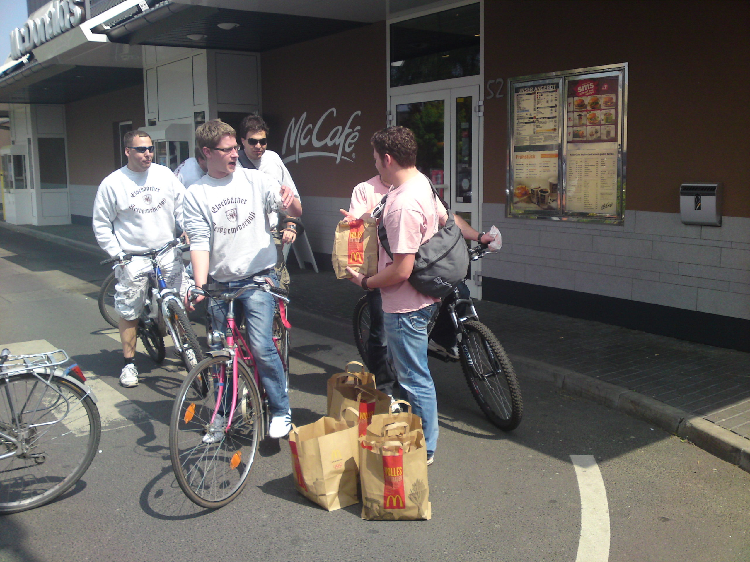 Bevor es nun Steaks und Worscht traditionell bei den Hunden gab, gings erstmal mit allen Mann zum McDonald’s Drive-In. “Mach mal 100 Cheeseburger!”. 15-20min hats gedauert. Reschpekt.